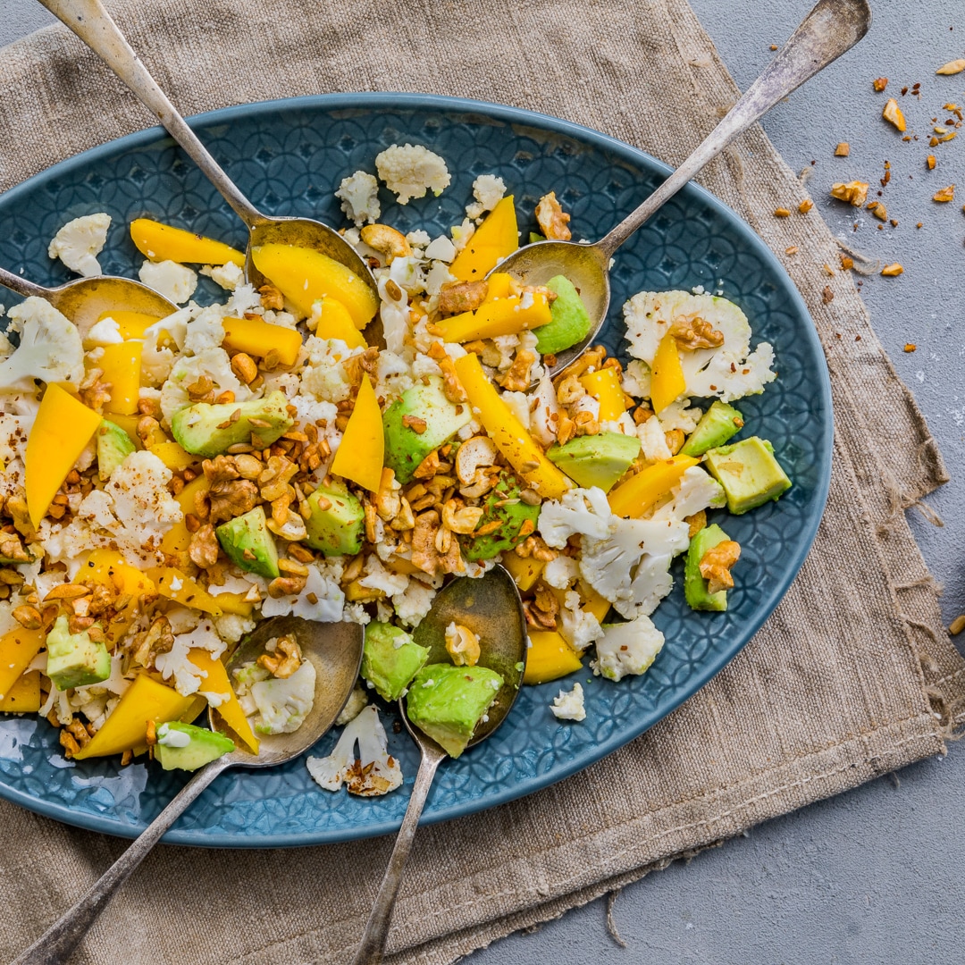 Wie viele Kohlsorten eignet sich auch der Blumenkohl als effektiver Nährstofflieferant. Beispielsweise ist er reich an den Vitaminen C und K und enthält Folsäure. Außerdem können Sie Blumenkohl hervorragend in der Low-Carb-Küche verwenden. Bringen Sie dazu beispielsweise einen lecker-leichten Blumenkohl-Avocado-Salat auf den Tisch. Oder kombinieren Sie den Blumenkohl mit Granatapfelkernen und Zimt zu einem orientalischen Blumenkohlsalat.