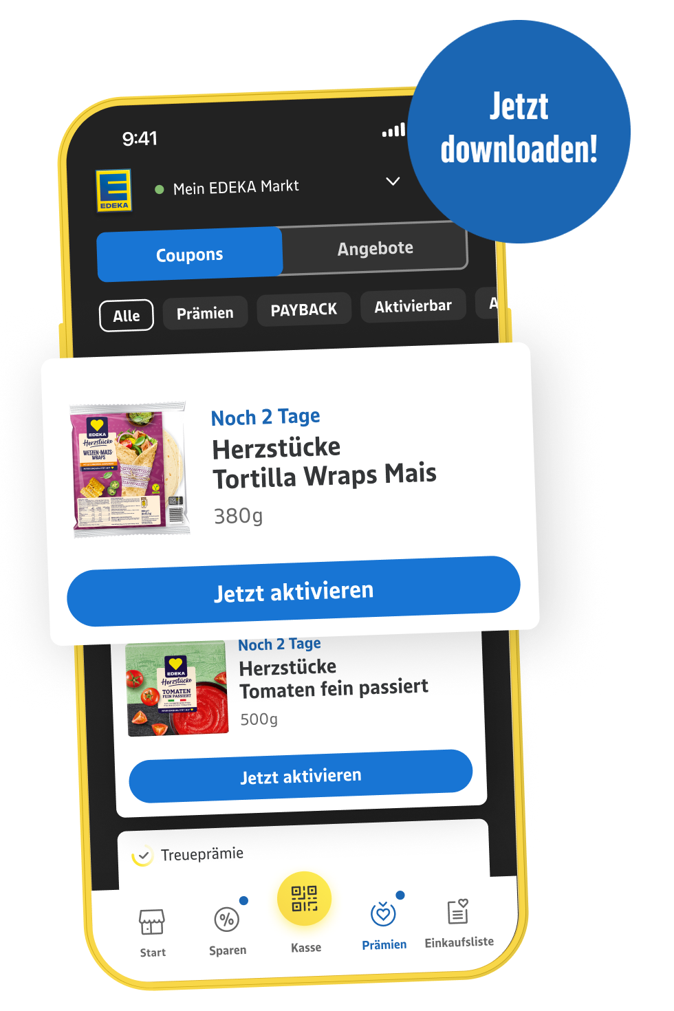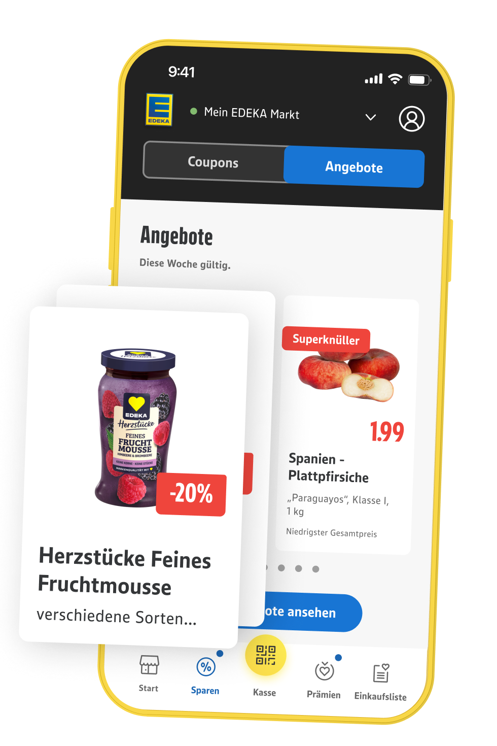 Mit der EDEKA App bekommst du jede Woche exklusive Rabatte, die du ganz bequem in deinem teilnehmenden Lieblingsmarkt einlösen kannst. ​