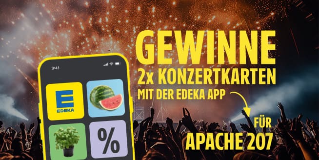 Im Zeitraum vom 24.11.25 – 06.12.25 mit der EDEKA App einkaufen und dabei in der EDEKA App unter „Mehr“ / „Aktionscodes“ der Aktionscode „#konzert“ eingegeben. Mit etwas Glück 1×2 Tickets gewinnen!