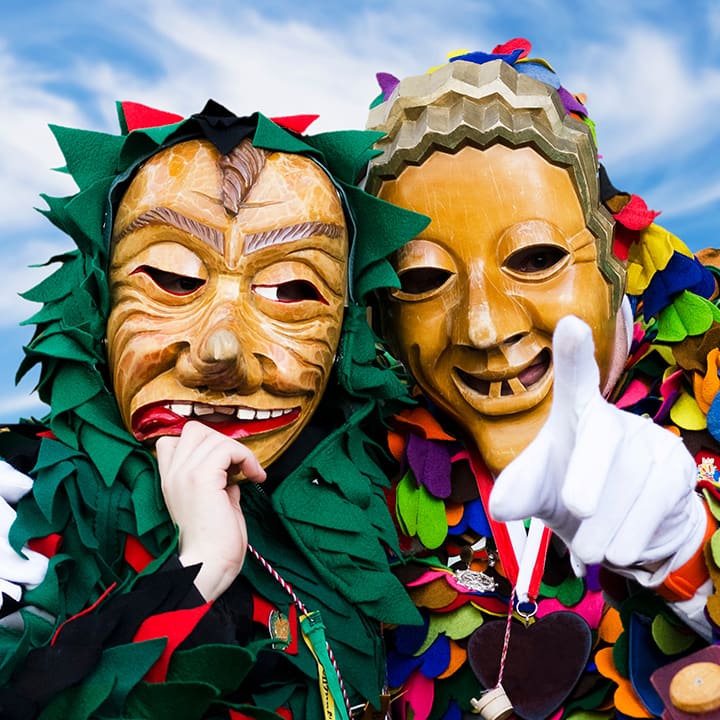 Wohl erst im 15. Jahrhundert hielten die heute üblichen Kostüme und Masken Einzug in Fastnacht und Karneval – vermutlich als ganz bewusste Reaktion auf die „Verteufelung“ des fastnächtlichen Treibens durch strenge Theologen. Es ist also kein Zufall, dass Teufel, Dämonen und Hexen noch immer zu den gängigen Gestalten vor allem der schwäbisch-alemannischen Fastnacht gehören. Die wahrscheinlich markanteste Figur ist allerdings der Narr geworden. Narren finden sich sowohl bei den großen Umzügen der Karnevals-Hochburgen als auch in den Gassen der Straßenfastnacht im schwäbisch-alemannischen Raum wieder – und nicht zuletzt im Sprachgebrauch: etwa im rheinländischen Synonym „Jeck“ oder in Form des Fasnet-Rufs „Narri, Narro“.