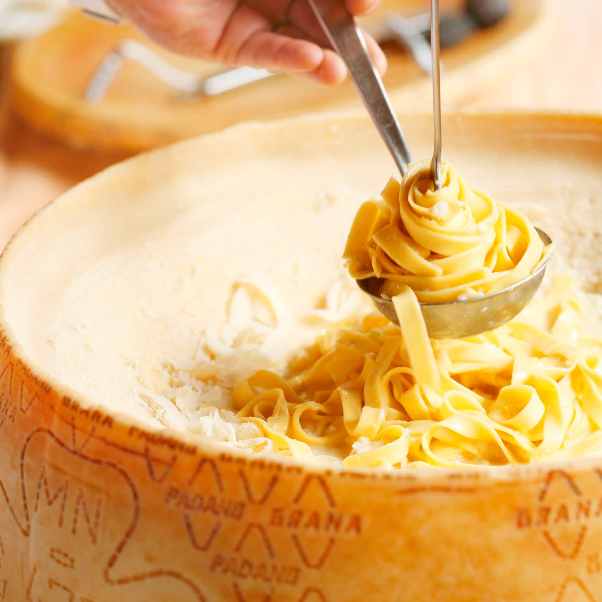Direkt beim Servieren werden Pasta-Kreationen gern mit geraspeltem Grana Padano gekrönt. Die Raspel sorgen dafür, dass man das Aroma des edlen Käses beim Genießen bewusst wahrnimmt. Aber nicht nur bei Pasta bietet sich der geraspelte Grana Padano an. Ob beim Überbacken von Aufläufen, zum Verfeinern von gebratenen Pilzen, Bratkartoffeln oder Gnocchi bis hin zur Abrundung von Fruchtdesserts wie Birnen- oder Feigenkompott: Grana Padano ist ein wahrer Alleskönner.
