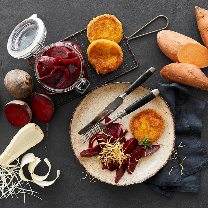 Im Herbst haben Wurzelgemüse wie Karotten, Pastinaken, Rote Bete und Sellerie Hochsaison. Sie zeichnen sich nicht nur durch ihren intensiven Geschmack, sondern auch durch ihre Vielseitigkeit in der Küche aus. Aus dem Südwesten bekommen Sie Wurzelgemüse von unserer Regionalmarke „Unsere Heimat – echt & gut“, zum Beispiel Rote Bete in Demeter-Qualität von der Hofgemeinschaft Heggelbach. Die roten Knollen mit dem unverwechselbaren Aroma schmecken wunderbar zu Süßkartoffelplätzchen. Das Rezept für dieses und weitere Gerichte findest Du hier: Kochen mit Wurzelgemüse – geschmacklich genial und richtig regional