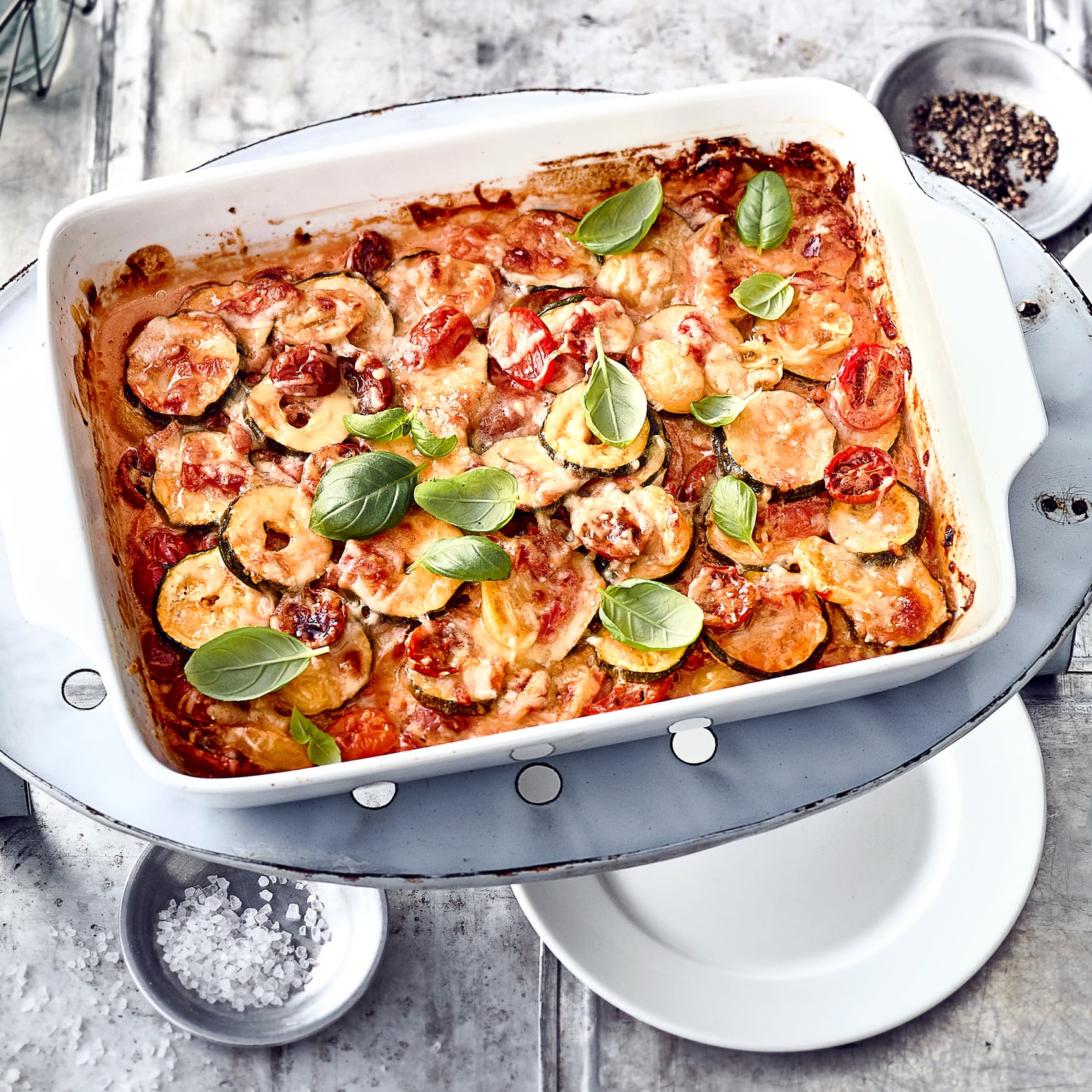 Frisches Gemüse aus dem Ofen, kombiniert mit aromatischen Käsesorten: ein perfektes Essen für die ganze Familie. Zumal Sie mit dem Rezept süßliche mit nussigen, frischen sowie säuerlichen Aromen zu einem ganz neuen Geschmackserlebnis vereinen.