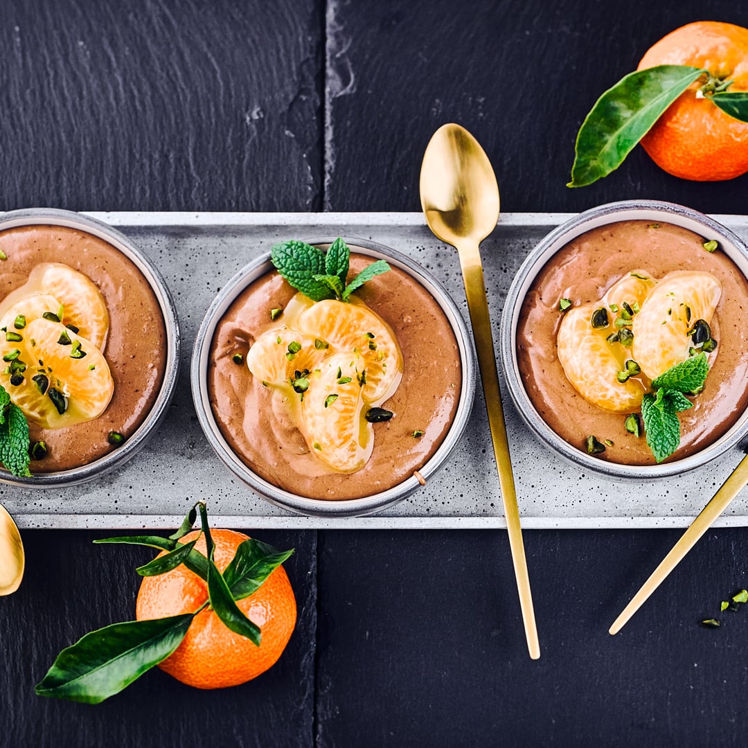 Ein Dessert für Genießer: Feine Schokocreme mit spriziger Mandarine.