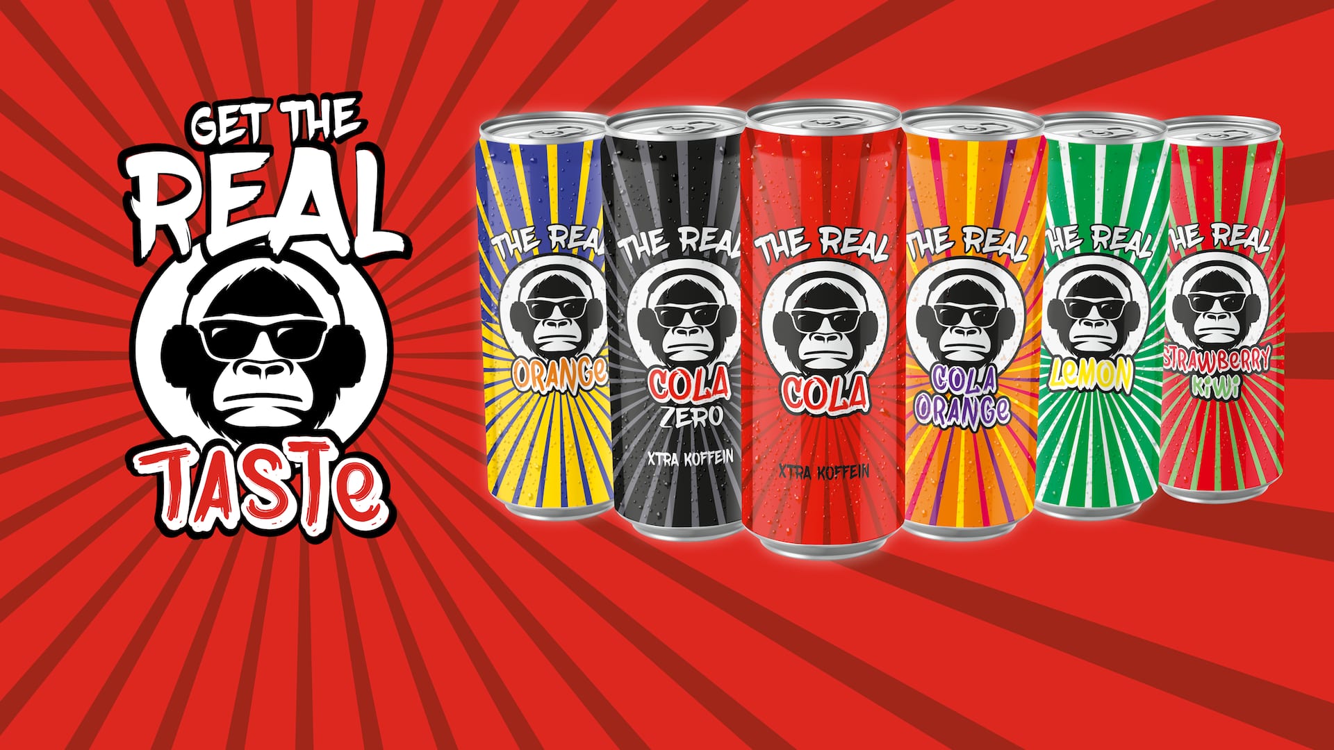 Wer Mut zum Inner Monkey hat, hat Lust auf The Real Taste! Softdrinks, die gemacht sind für alle, die das Leben immer und überall voll auskosten. Voller Energie, voller Frucht und voller Lebensfreude. Jede stylische 0,33 l Dose von The Real Taste ist ein persönliches Statement für den Auftritt abseits des Mainstreams. Mit xtra viel Koffein haben The Real Taste Cola und The Real Taste Cola Zero bereits gezeigt, dass es auch wilder geht. Jetzt gehen gleich vier neue Sorten von The Real Taste an den Start, mischen den Alltag monkeymäßig auf und lassen xtra-fruchtig viele andere Softdrinks einfach nur noch blass aussehen.