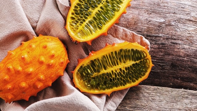 Das saftige gelbe Fruchtfleisch hat einen süß-säuerlichen Geschmack.