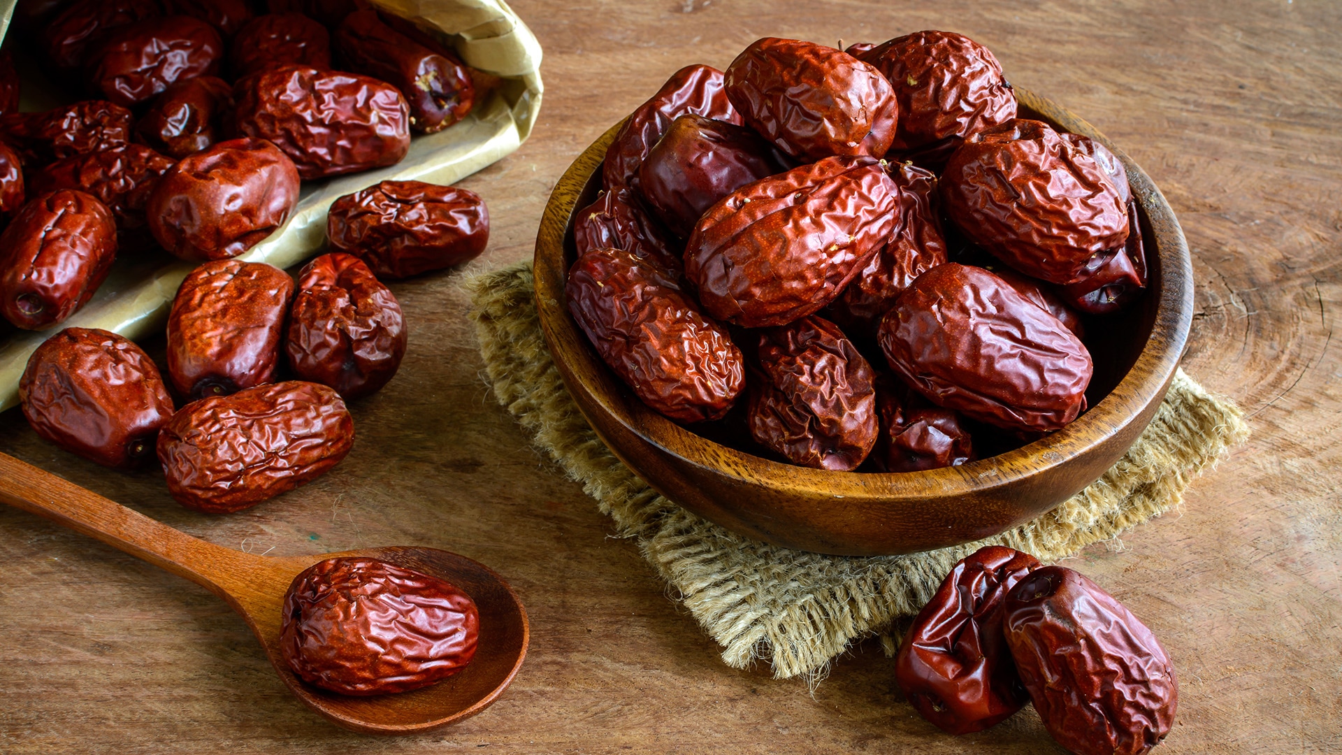 Die chinesische Jujube beziehungsweise chinesische Dattel ist ein Kreuzdorngewächs, das essbare Steinfrüchte hervorbringt. Sie sehen wie rote Datteln aus, schmecken aber anders. Schon der Geruch der Jujube ist intensiver, das Aroma süß-säuerlich. Vor der vollständigen Ausreifung erinnert es an Apfel. Wie Datteln gibt es auch Jujube frisch oder in getrockneter Form. Die Konsistenz des Fruchtfleischs der Trockenbeeren ist weich und locker. Im Inneren befindet sich ein harter, ungenießbarer Kern, auf den Sie beim Genuss Acht geben sollten.