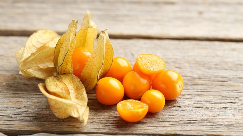 Die Physalis (auch Kapstachelbeere oder Lampionfrucht genannt) ist von einem hellbraunen pergamentartigen Blütenkelch umschlossen. Öffnet man diesen, kommt eine leuchtend orangefarbene kirschgroße Frucht zum Vorschein.